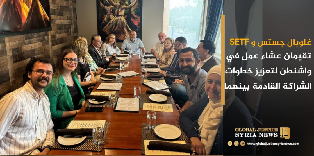 جمع عشاء عمل أقيم في العاصمة واشنطن، مساء أمس الأربعاء، كلاً من منظمتي فريق الطوارئ السوري SETF وغلوبال جستس الأميركيتين، بغرض تنظيم خطوات الشراكة القادمة، وتوطيد التعاون في ما بين الجانبين.